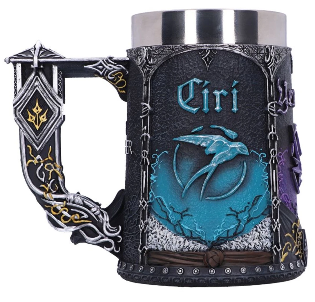 | Autres | Cette chope sous licence officielle The Witcher Fellowship représente un personnage différent de chaque côté de la coupe, Geralt de Riv, Ciri et Yennefer. Le symbole de chaque personnage est affiché avec une couleur différente. La poignée de la chope est inspirée d'un bouclier, avec des détails en or. Coulée dans la meilleure résine avant d'être peinte à la main par des experts, cette chope sera parfaite pour tout fanatique de The Witcher. |